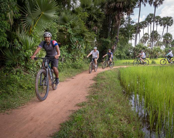 Cykelturen går via en idyllisk rute langs Siem Reap-floden, hvor du kan nyde den friske morgenluft og den fredfyldte atmosfære. Herfra drejer du væk fra de gængse turiststier og ind på charmerende grusstier, der snor sig gennem det frodige landskab og de maleriske landsbyer.