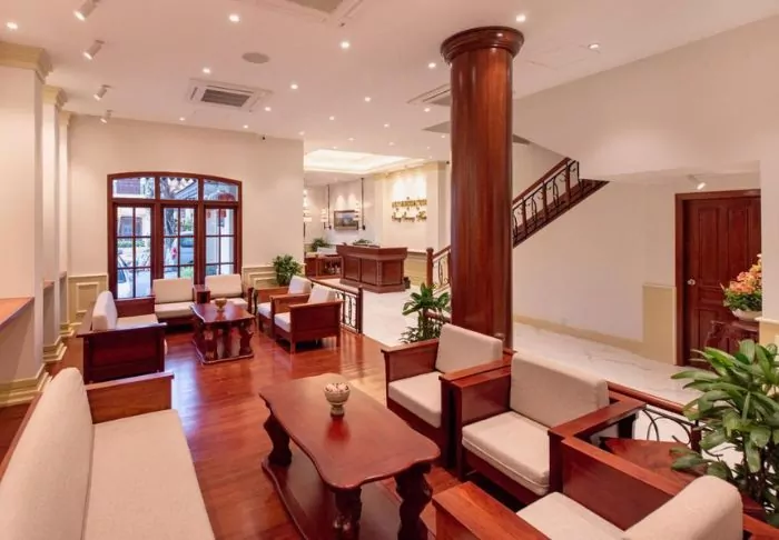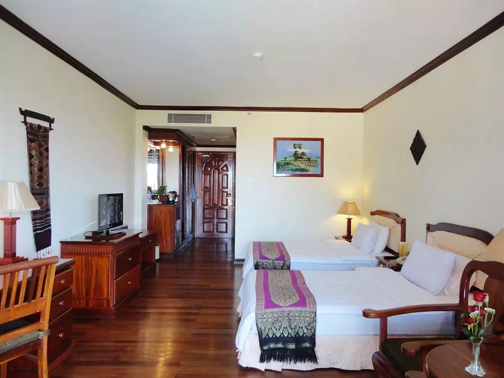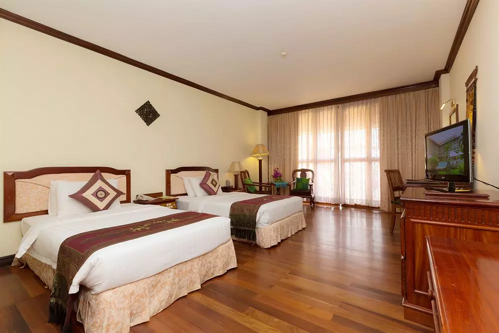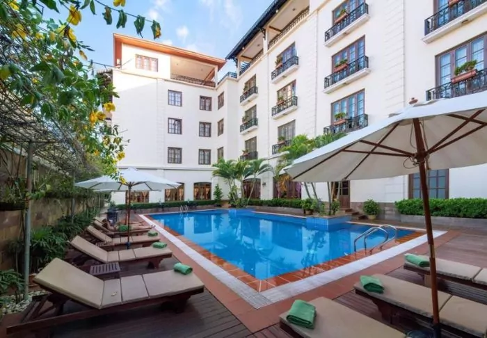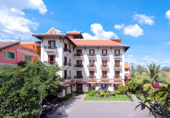 Steung Siemreap åbnede i begyndelsen af 1920’erne og er siden hen blevet renoveret ad flere omgange, og man har, af respekt for stedet, valgt at holde fast i den oprindelige franske kolonistil. Hotellet består i dag af 76 elegante værelser, som alle er indrettet med flotte træmøbler, polerede trægulve, lydtætte franske vinduer og smedejernsbalkoner. Samtlige værelser er udstyret med wi-fi, aircondition, minibar, tv, telefon, værdiboks samt kaffe og te faciliteter, mens badeværelserne er udstyret med badekar, toiletartikler, hårtørrer samt badekåbe og slippers.