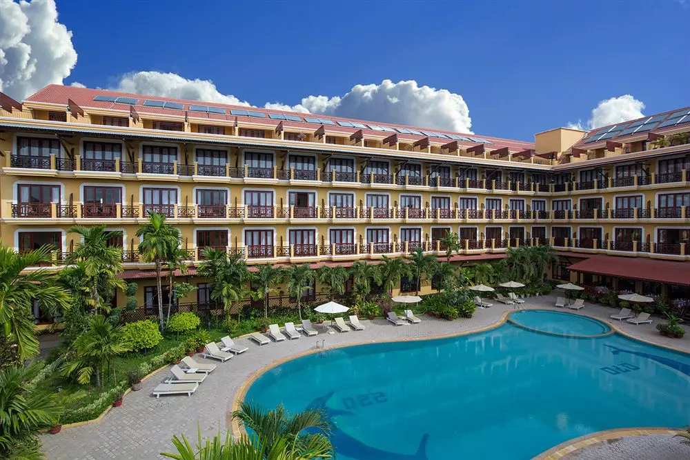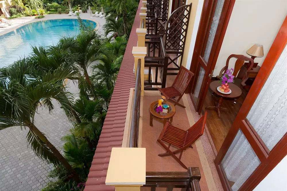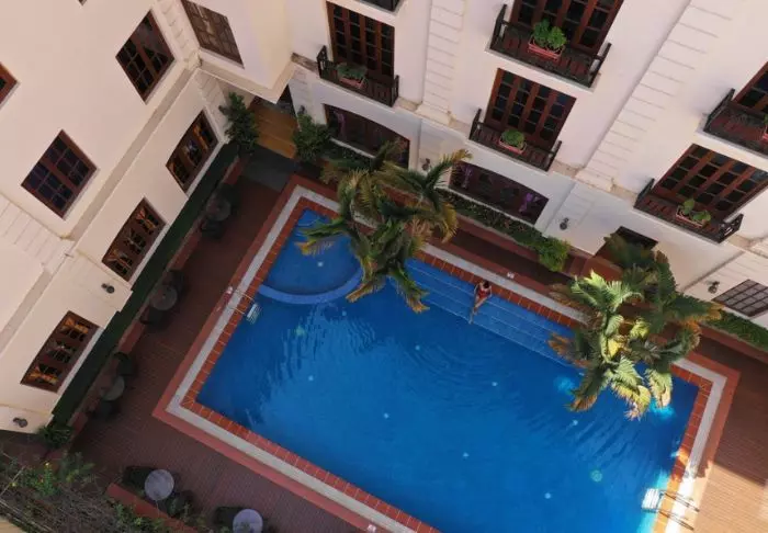 Steung Siemreap har desuden et dejligt poolområde med palmer og tropiske træer, og her er adgang til både liggestole og parasoller.