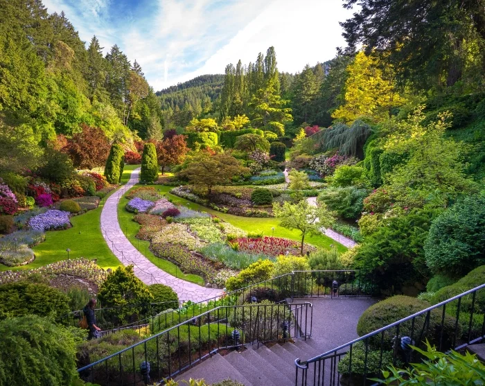 Tag med på opdagelse i Victorias botaniske have Butchart Gardens – et nationalhistorisk vartegn fyldt med farverige blomsterbede, grønne plæner og velanlagte stier.
