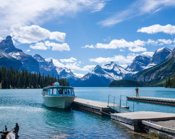 Tag med på en naturskøn sejltur på Maligne Lake, som er en af de smukkeste og mest ikoniske søer i de canadiske Rocky Mountains.