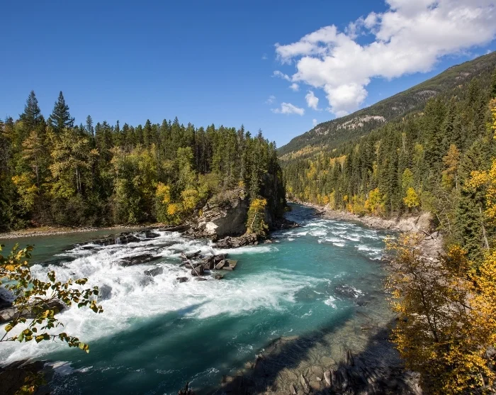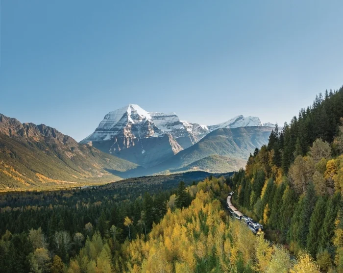 Fra Rocky Mountains’ sneklædte bjergtinder og gletsjerlandskab mod floddale i Monashee og Cariboo bjergene. Iblandt dagens højdepunkter hører sig Mount Robson, det højeste bjerg i de canadiske Rockies. Rejsen fortsætter forbi vandfaldet Pyramid Falls, Yellowhead Pass og videre forbi den brusende Thompson River efterhånden som du nærmer dig byen Kamloops, hvor du skal tilbringe aftentimerne og natten.