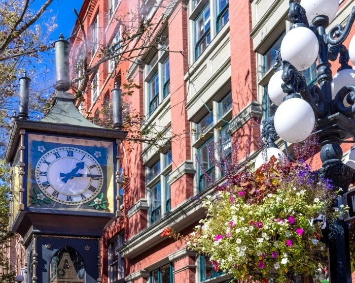 I byens ældste bydel, Gastown, finder du et af verdens eneste dampdrevne ure, Gastown Steam Clock fra 1977, der stadig ”fløjter” en gang i timen. Området er charmerende med sine brostensbelagte gader og gamle gaslamper, og er et oplagt sted at besøge, hvis du søger små spisesteder med en lokal ånd.