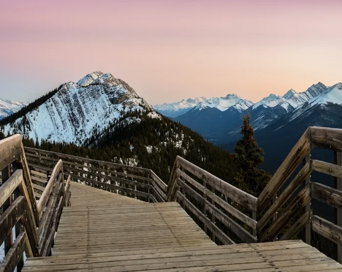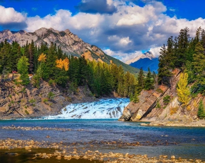 Banff er en charmerende by beliggende i Bow Valley i selve Banff Nationalpark. Også her skærer en del af den kraftfulde flod Bow River sig igennem byen, og vi kan varmt anbefale en gåtur via det velanlagte stisystem hen til byens berømte vandfald, Bow Falls. Du kan også tage en tur i højderne i gondolliften, Banff Gondola, der på knap 8 minutter tager dig 700 højdemeter op til toppen af Sulphur Mountain, hvor du får panoramisk udsigt til intet mindre end 6 bjergkæder. På toppen har du mulighed for at nyde en forfriskning på Sky Bistro, hvor menuen er lige dele god mad og udsigt.