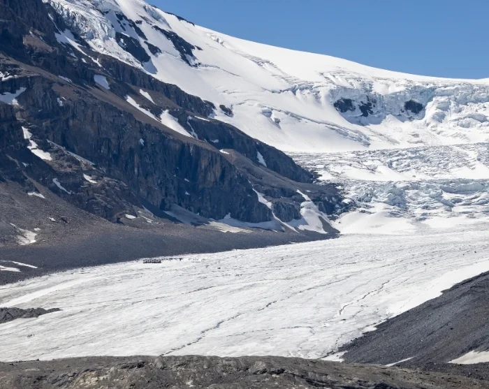 Rejsen fortsætter på en af verdens smukkeste veje, Icefields Parkway. En bjergrute igennem Rocky Mountains’ utrolige gletsjerlandskaber. Du nøjes ikke med at se på gletsjere – du skal også røre. Med en terrængående bus køres du op på Athabasca gletsjeren og kan røre ved og gå på isen fra 400 år gamle snefnug.