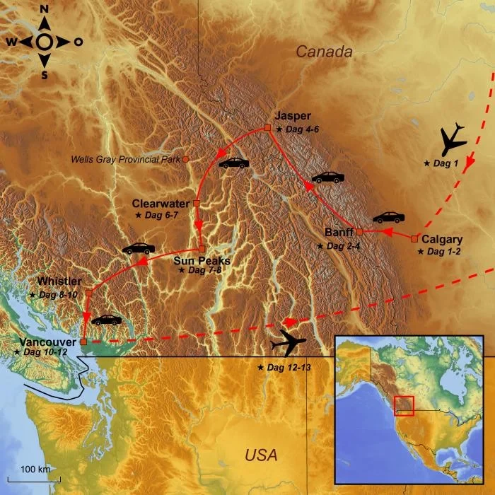 *Vær opmærksom på, at du i dag forlader Alberta til fordel for provinsen British Columbia. Du bevæger dig samtidig ind i en anden tidszone: British Columbia er én time bag Alberta.