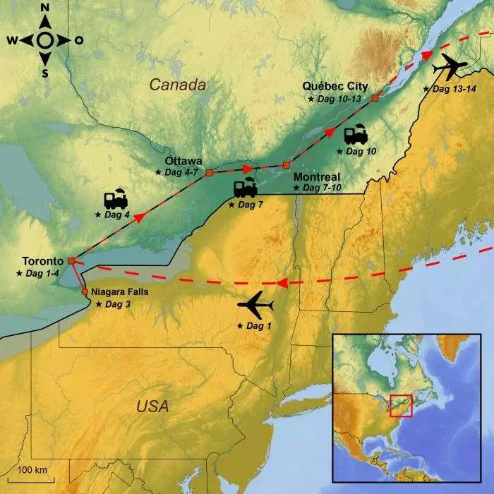 I dag tager du hul på din rejse til Canada. Du flyver fra valgte lufthavn med mellemlanding undervejs, og senere i dag ankommer du til Canadas største by, Toronto, der ligger i provinsen Ontario.