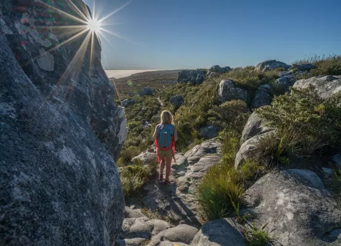 Platteklip Gorge er den ældste rute til toppen af bjerget. Du skal nok regne med at blive forpustet, for ruten er relativ stejl, men det er den mest populære og den mest direkte vej til toppen.