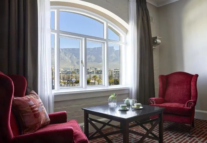 De 94 værelser fordeler sig over 3 etager og har udsigt mod enten havnen, Table Mountain eller mod pladsen foran hotellet. Fælles for dem alle er naturligvis, at Waterfront med alle butikker, restauranter, barer osv. ligger lige uden for døren. Bedre placering fås næsten ikke.