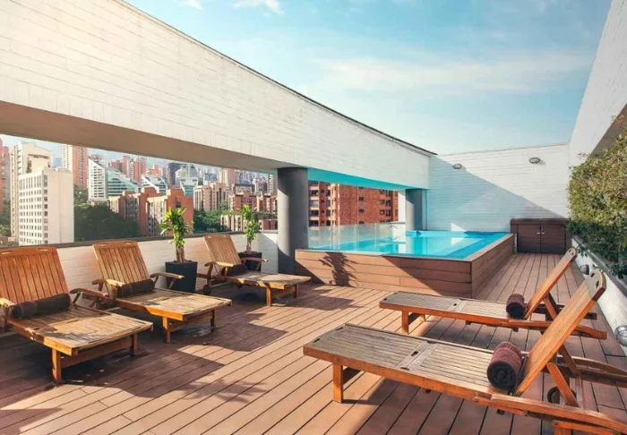 På hotellets tagterrasse kan du nyde en betagende udsigt over Medellíns skyline, mens du slapper af i jacuzzien eller på solterrassen.