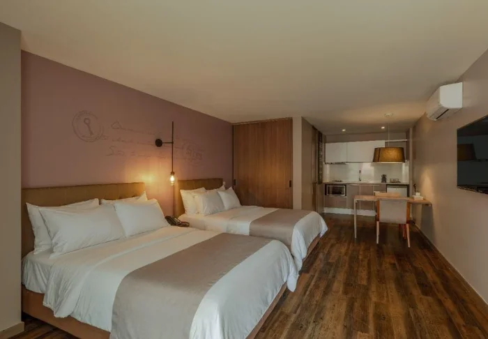Hotellet har 60 smagfuldt indrettede værelser i forskellige kategorier, hvor komfort, æstetik og funktionalitet går hånd i hånd. Alle værelser er bl.a. udstyret med aircondition, Wi-Fi, fladskærms-TV, sikkerhedsboks, balkon samt et lille tekøkken.