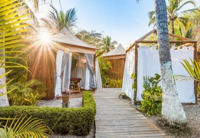 Det er også muligt at tilkøbe forskellige massager og behandlinger i deres lille udendørs spa.