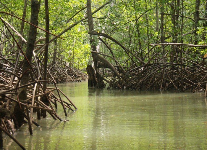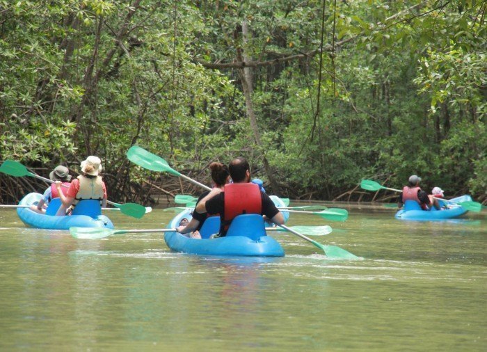 Herefter fører din guide dig ad vandvejene gennem den tropiske mangroveskov, der er fuld af liv. Mens du padler i skyggen af bladene fra de høje grønne træer, får du et indblik i de fascinerende mangrovetræer med deres imponerende rødder og det eksotiske dyre- og planteliv, som lever blandt træerne.