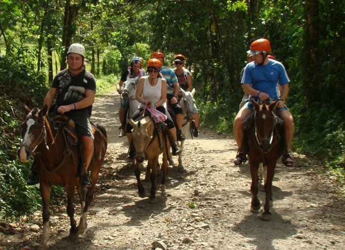Du rider gennem flotte grønne landskaber, mens du fra hesteryggen kan nyde naturen og udsigten til de spektakulære vulkaner Arenal og Chato i det fjerne. Lige før du når vandfaldet, tager du afsked med din hest, og det sidste stykke vej foregår til fods gennem den tropiske regnskov. Her kan du være heldig at spotte aber, tukaner og andre af de spændende fugle, der hører til i området.