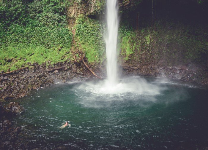 Ved ankomst til La Fortuna-vandfaldet, kan du tage en forfriskende dukkert i det klare vand ved foden af vandfaldet, tage billeder eller bare slappe af til lyden af det storslåede vandfald.