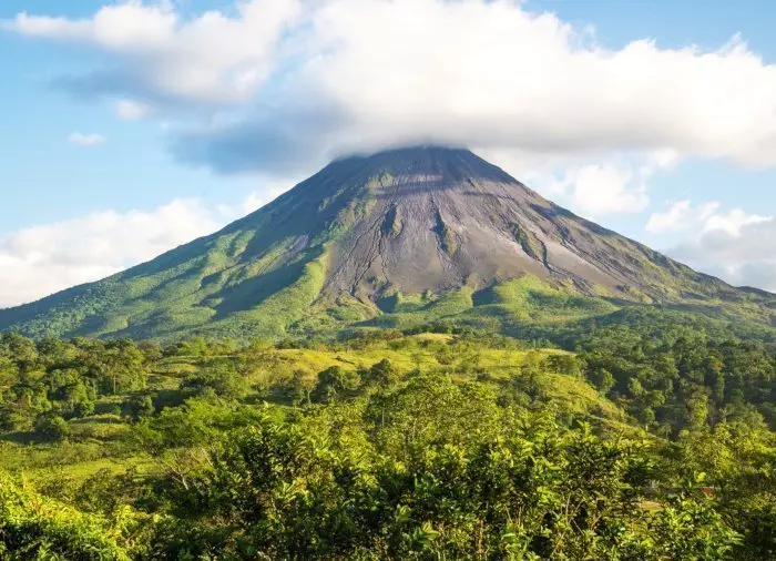 Fra regnskoven går turen mod Costa Ricas mest berømte vulkan, Arenal-vulkanen, der smukt troner i baggrunden af byen La Fortuna.
