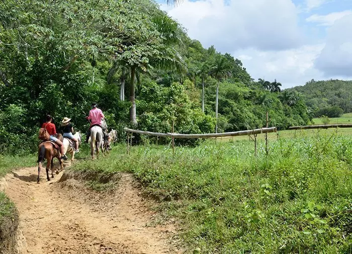 Tag med på en 3 timers guidet tur rundt i Viñales-dalens flotte natur på hesteryg. Undervejs kan du beundre områdets smukke landskab med de specielle kalkstenstoppe samt de mange frugtbare marker. Her findes bl.a. tobaksmarker og kaffe -, banan-, ananas- og mangoplantager.