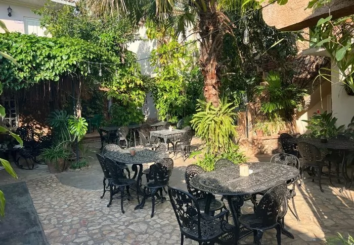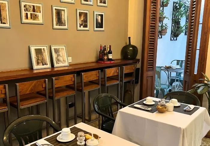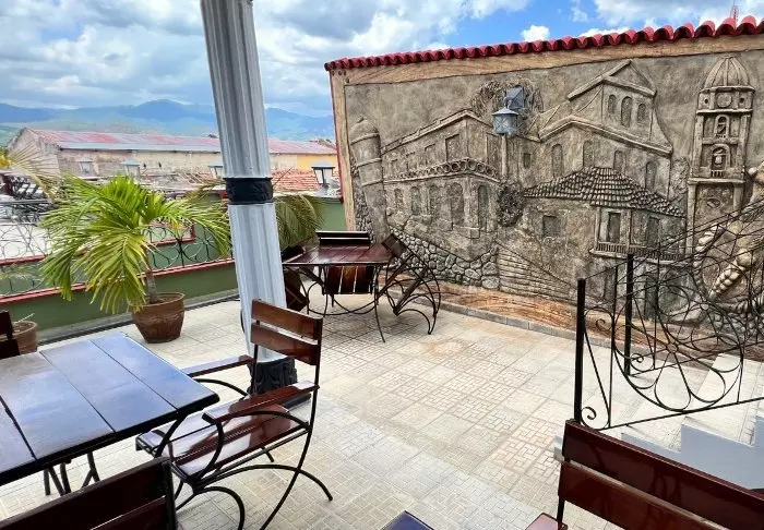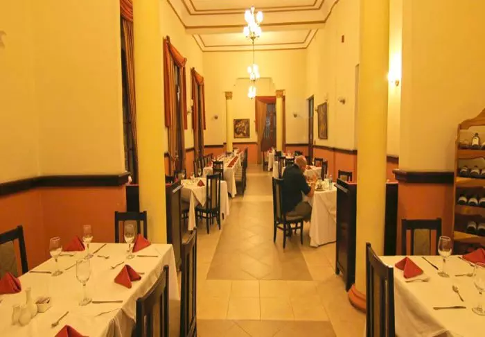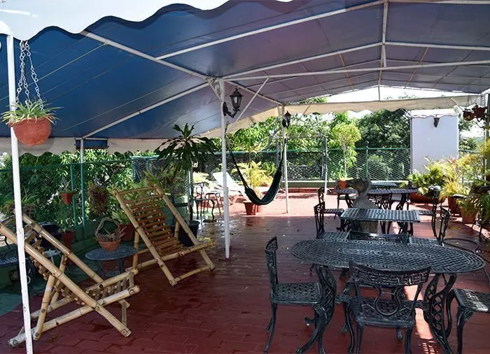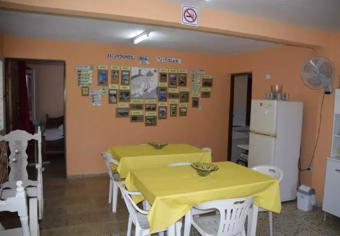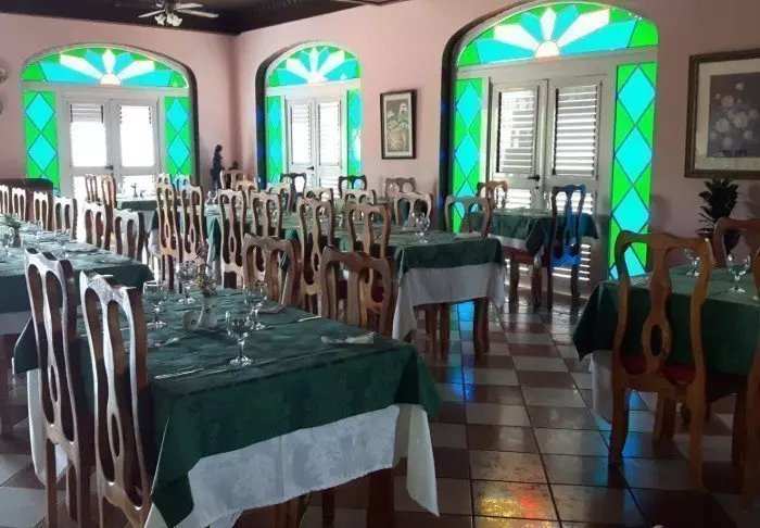 Der er hyggelige fællesområder, hvor du kan sidde og slappe af. Derudover er der en lille restaurant, der både serverer internationale og traditionelle cubanske retter. Det er også her den inkluderede morgenmad nydes.