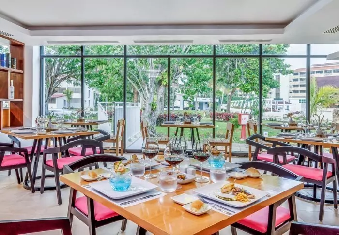 I den hyggelige indendørs gårdhave kan du nyde en bid mad fra hotellets restaurant eller en mojito fra baren i ro og mag. Du kan også sidde og se livet passere forbi på Plaza de la Solidaridad, mens du nyder din morgenmad, frokost eller aftensmad i hotellets restaurant, der både har et indendørs og et udendørs område.