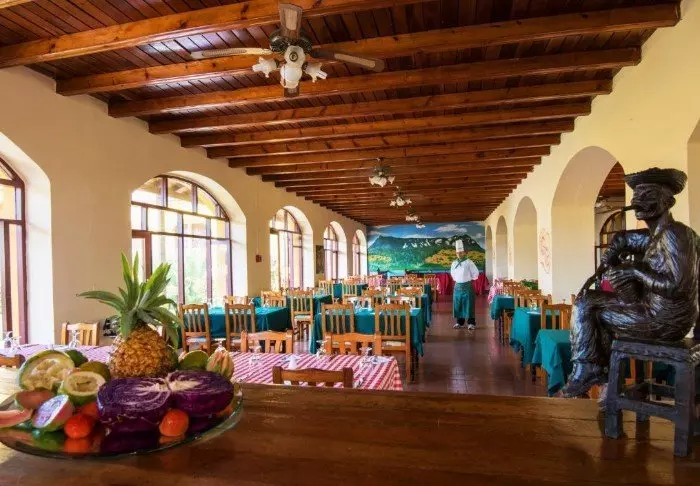 I restauranten kan du nyde både kreolske og internationale retter. Herfra er desuden en fantastisk udsigt over byen og bjergene.