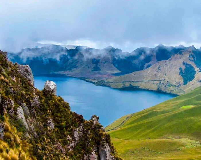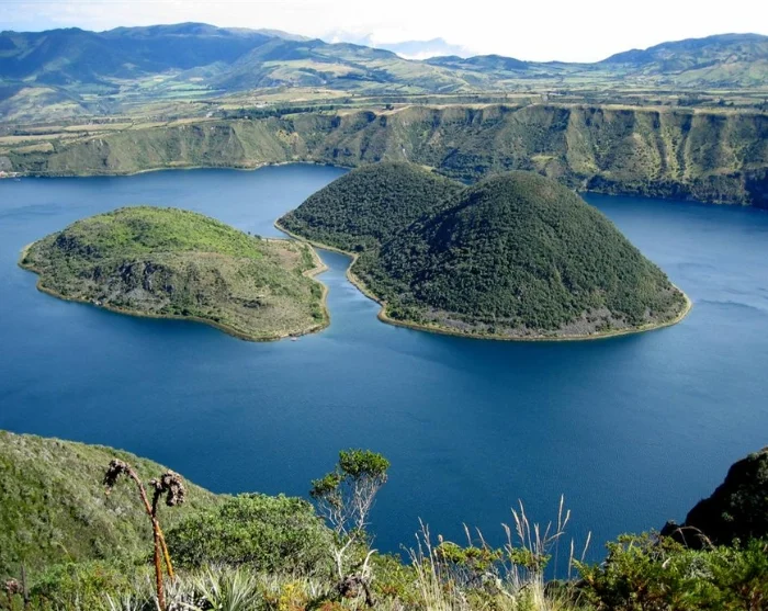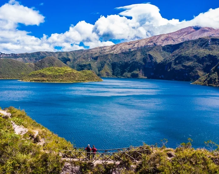 Inden turen går tilbage til Quito, er der stop den smukke kratersø Cuicocha, der har to små øer liggende midt i det klare vulkanske vand.