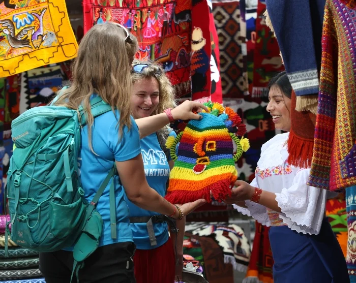 I Otavalo besøger du det berømte marked, hvor du finder håndvævede ponchoer, tørklæder, tæpper og andet traditionelt kunsthåndværk fremstillet af lokale håndværkere og vævere. Markedet er åbent hver dag, men er størst og mest livligt om lørdagen. Det er et oplagt sted at købe unikke og prisvenlige souvenirs – eller blot slentre rundt og nyde stemningen og de mange farver.