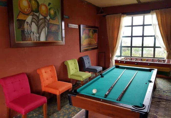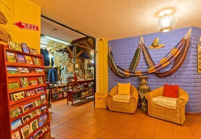 Der er flere områder, hvor du kan slappe af med en kop kaffe eller et spil skak. Hotellet har også sin egen butik, der sælger smukke farverige souvenirs fra Ecuador.