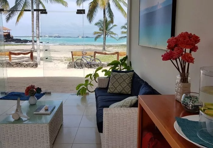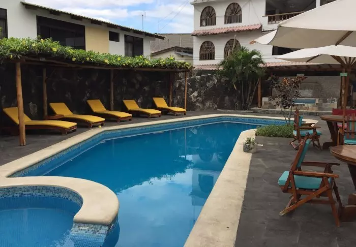 Hotellet har en unik beliggenhed i Puerto Ayora tæt på både by og den skønne natur. Få minutters gang fra hotellet ligger Ninfas-lagunen, hvor du kan spotte forskellige fugle og med lidt held, rokker, små hajer og babyskildpadder. Byens travle mole og hovedgaden Avenida Charles Darwin med sine hyggelige restauranter, caféer og små butikker, ligger også blot få minutters gang fra hotellet.