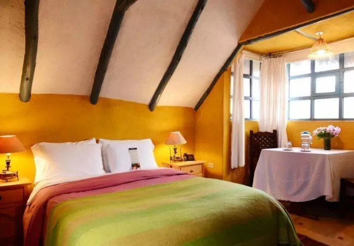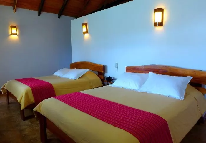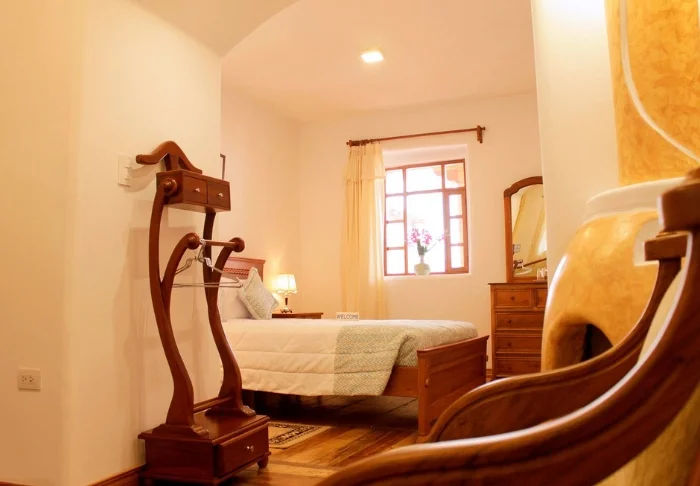 Haciendaen er bygget i traditionel stil med lokale materialer, og alle 22 værelser er unikt indrettet. Alle værelser har varmeapparat til de kølige nætter og eget badeværelse med varmt vand. Der er også wi-fi.