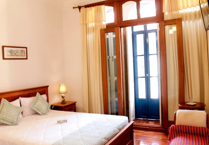Hotellet er i to etager, og værelserne er bygget rundt om to glasoverdækkede gårdhaver, som giver et dejligt lys og en helt unik charme. De 32 rummelige værelser er indrettet med smukke mørke træmøbler og har alle aircondition, værdiboks, wi-fi og et fuldt udstyret badeværelse med hårtørrer.