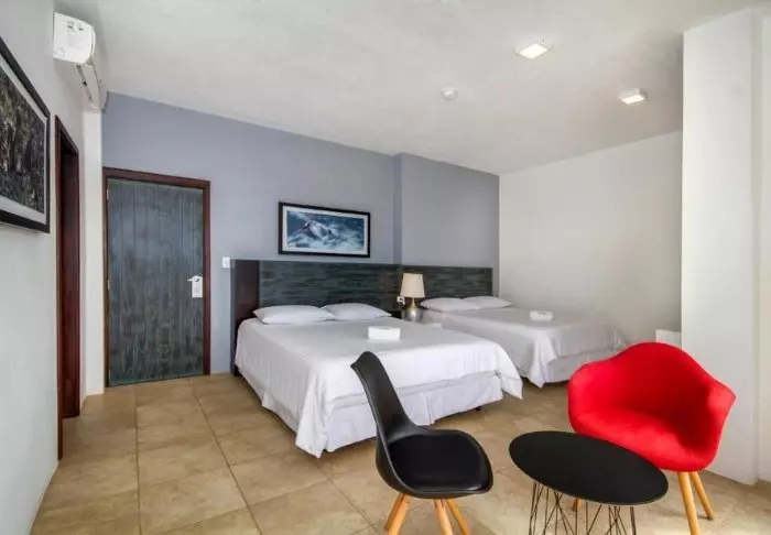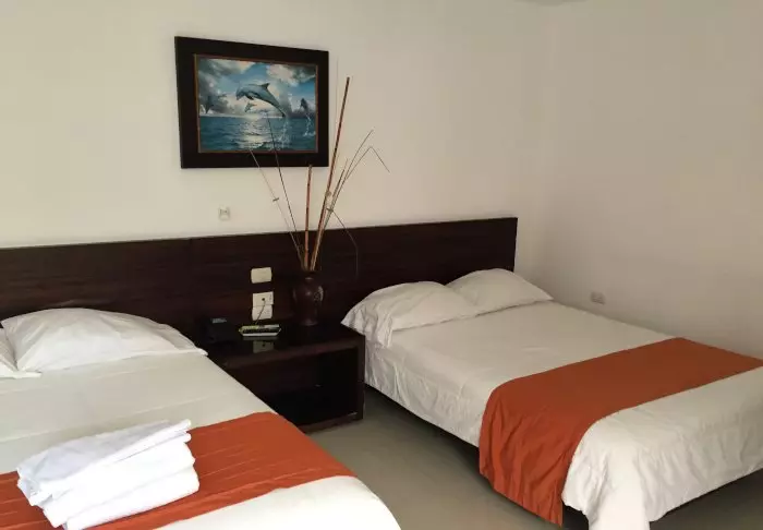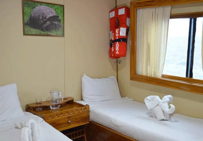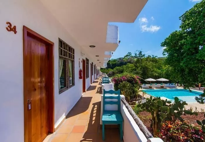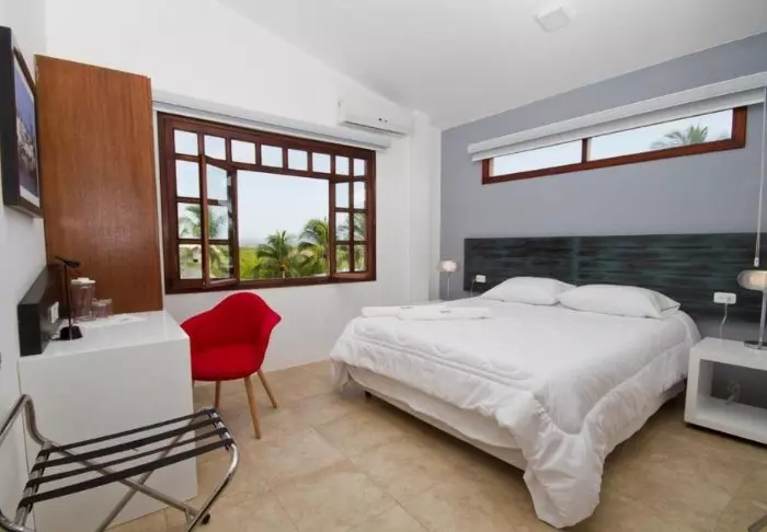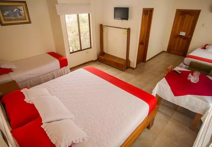 Her er blot 16 værelser (4 standard værelser og 12 standard værelser med havudsigt). Værelserne er simpelt indrettede, men pæne og rene med farverige billeder på væggene af naturen og dyrelivet på Galapagos-øerne. Alle værelser har eget badeværelse, aircondition, wi-fi og kabel-tv.