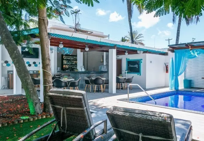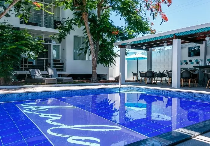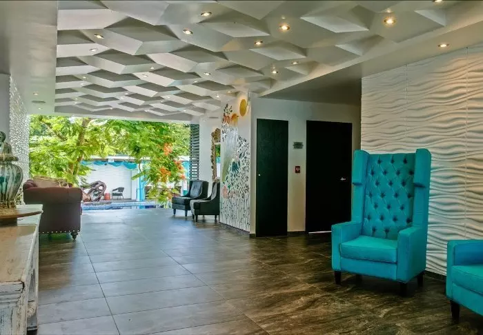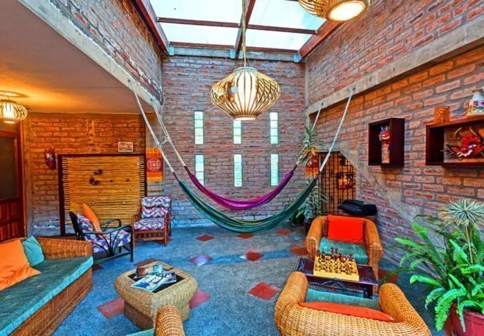 Det farverige hotel er i to etager og har 29 værelser, som ligger rundt om den frodige gårdhave. Her er mange hyggelige fællesområder, hvor du kan slappe af i en hængekøje og få en snak med andre rejsende.