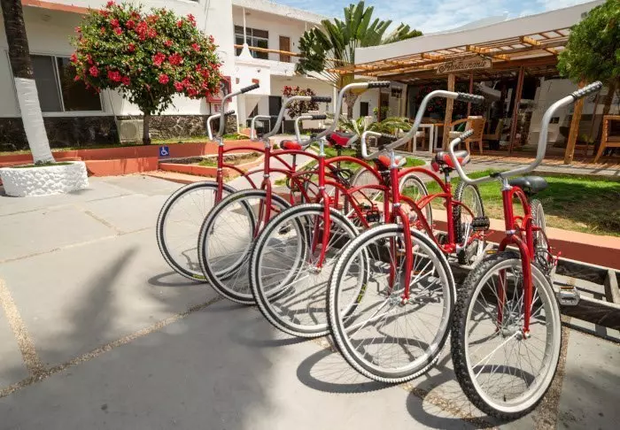 Hvis du skal besøge Tortuga Bay på dit ophold i Puerto Ayora, så ligger indgangen til stien blot 5 minutters gang fra hotellet. Hotellet har også cykler til fri afbenyttelse, som du kan bruge til at komme rundt i byen med.