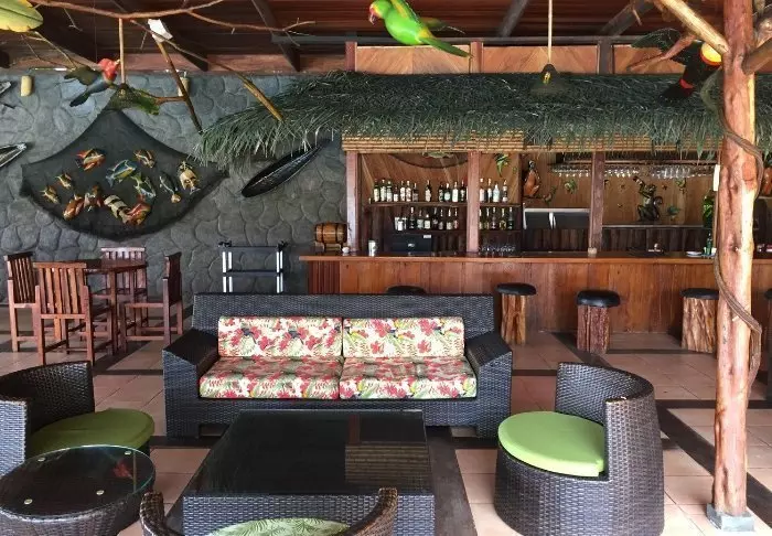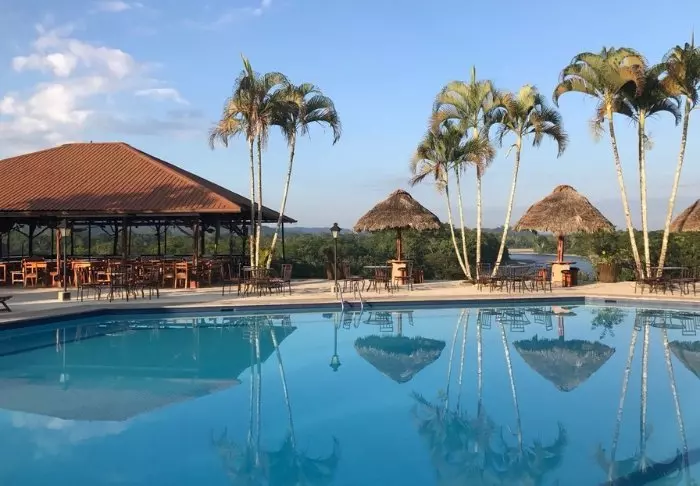 Over restauranten er der et fællesområde med spil og tv, og herfra kan du klatre videre op i et lille udkigstårn og få en flot panoramaudsigt over regnskoven og lodgen. På en klar dag kan du se Andesbjergene og den smukke kegleformede Tungurahua-vulkan i horisonten.