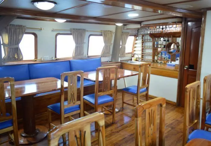 Der er flere hyggelige fællesområder og et soldæk, hvor du kan slappe af og snakke med andre rejsende om dagens oplevelser. Generelt er der en hyggelig og familiær stemning ombord på båden, og både din guide og besætningen gør alt, for at du skal få et uforglemmeligt ophold på Golondrina I.