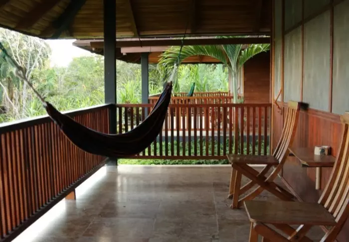 Lodgen har 76 rummelige rustikke værelser, som alle har vifte, privat badeværelse og egen terrasse med en hængekøje, hvor du kan slappe af og nyde de frodige omgivelser. Der er blot myggenet for vinduerne, så du får en naturlig brise i værelset, og samtidig kan du ligge og lytte til junglens lyde og den brusende flod. Om natten vil vi dog anbefale at bruge ørepropper, da regnskovens lyde godt kan larme mere, end du måske regner med.