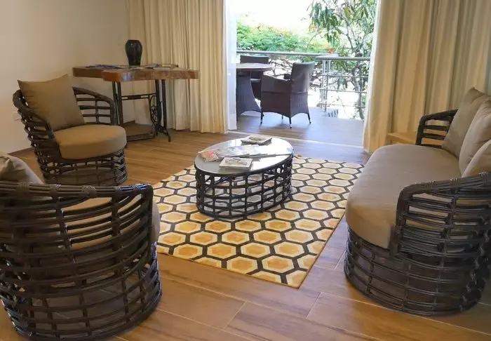 Hotellet er i 2 plan og værelserne ligger rundt om den hyggelige gårdhave, hvor eksotiske blomster og træer danner ramme for afslapning i en solseng eller måske en forfriskende dukkert i den lille pool.