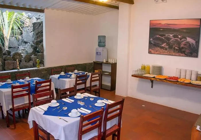 Din inkluderede morgenmad serveres som buffet i hotellets restaurant. På grund af det dejlige klima på øen kan du vælge at sidde både ude og inde. Restauranten har også åbent til frokost og aftensmad, hvor du kan bestille lækre ecuadorianske retter.