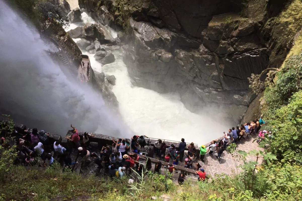 Byen er omgivet af vandfald, og en populær aktivitet er at tage ud og se Pailón del Diablo, der er det største vandfald af dem alle og imponerer med sin kraft og styrke. Man kører derud med en lokal Chiva-bus, som er en farverig bus uden døre og vinduer, så der er godt udsyn til den smukke natur. Du kan nemt arrangere denne tur lokalt. Det koster ca. 15 USD per person.