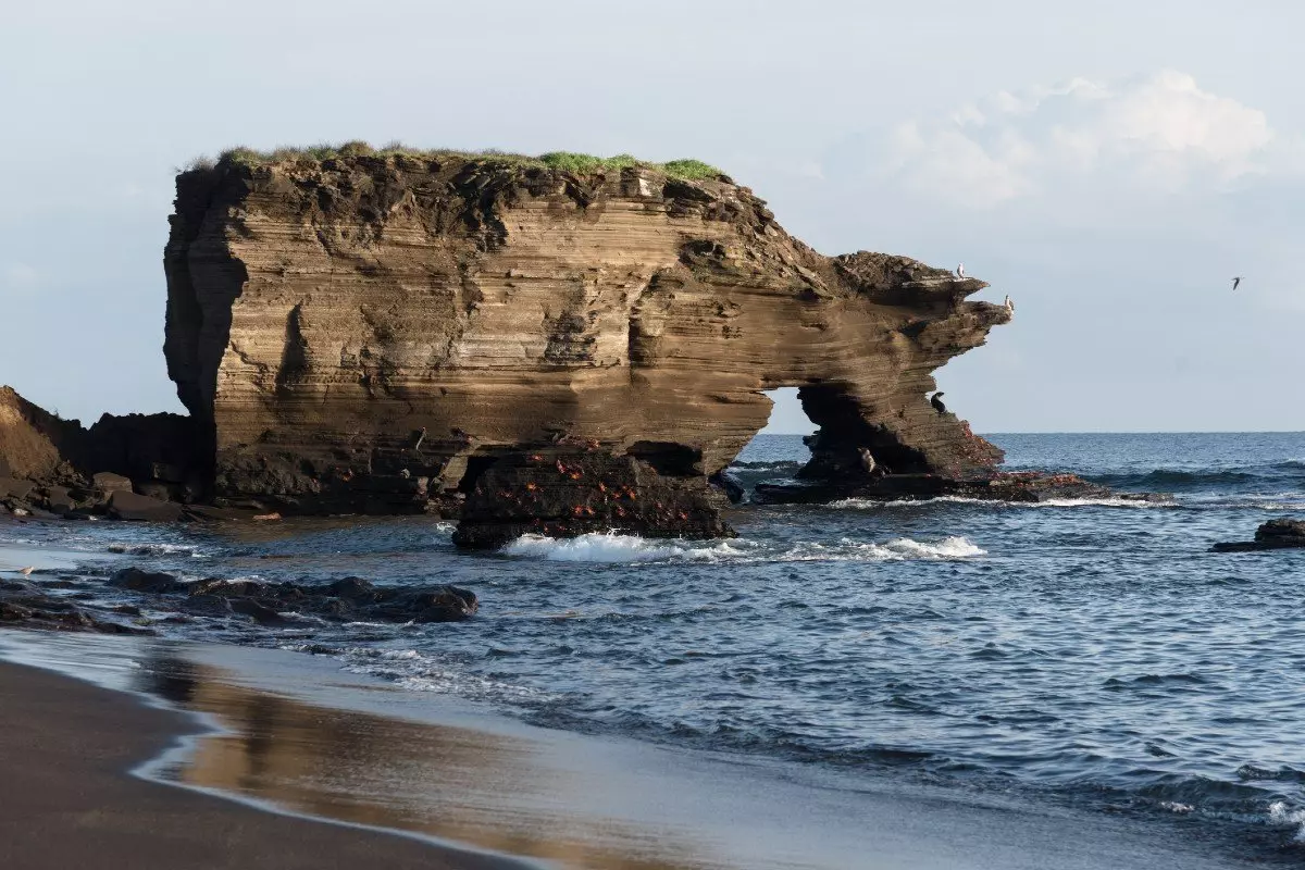 Efter morgenmaden går du i land på den sorte vulkanstrand ved Puerto Egas på øen Santiago.