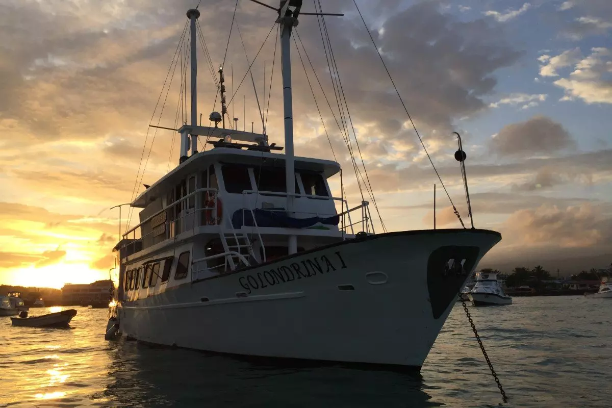 I Baltra Lufthavn bliver du hentet og kørt hen til båden Golondrina I, som skal være dit flydende hjem de næste 5 dage. Her bliver du indlogeret i din kahyt, og bagefter er der et lille velkomstmøde efterfulgt af frokost. På velkomstmødet vil din guide præsentere dig for kaptajnen, kokken og resten af besætningen og selvfølgelig de andre gæster på båden, inden eftermiddagens spændende program bliver gennemgået.