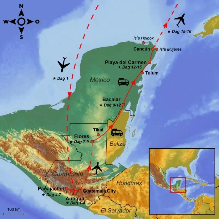 Tag med på en eventyrlig rejse, hvor du oplever Guatemalas koloniale charme i Antigua, sejler på den smukke Atitlán-sø, udforsker de majestætiske mayaruiner i Tikal og nyder lagunens ro i Bacalar – inden du runder af med afslappende stranddage ved Det Caribiske Hav i Playa del Carmen.