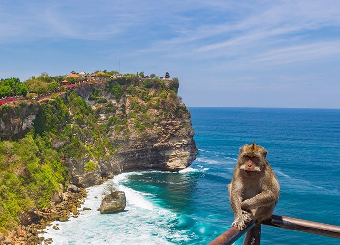 Du bliver hentet på dit hotel om eftermiddagen og bliver kørt til et af Balis mest berømte templer Pura Luhur Uluwatu, der ligger på en klippeafsats 76 m over havets overflade med en fantastisk udsigt over det Indiske Ocean. Mærk suget i maven når du står på toppen langs muren og kigger ned i det brusende hav, der med store skumsprøjt slår ind mod klippen. Arkæologiske fund daterer templet tilbage til det 10. århundrede og det er samtidig et af de smukkeste steder på Bali at nyde solnedgangen. I træerne ved indgangen til templet holder legesyge aber til. De siges at beskytte templet mod det dårlige og det onde.