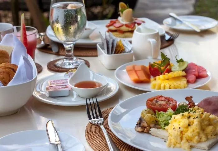 Når appetitten melder sig, byder resortet på flere gode muligheder. Hovedrestauranten Pandawa Restaurant serverer en varieret morgenbuffet med både internationale retter, friskbagte lækkerier og omeletstation. Til frokost og aften byder menukortet på alt fra friske salater til saftige sirloin steaks og friskfanget seafood.