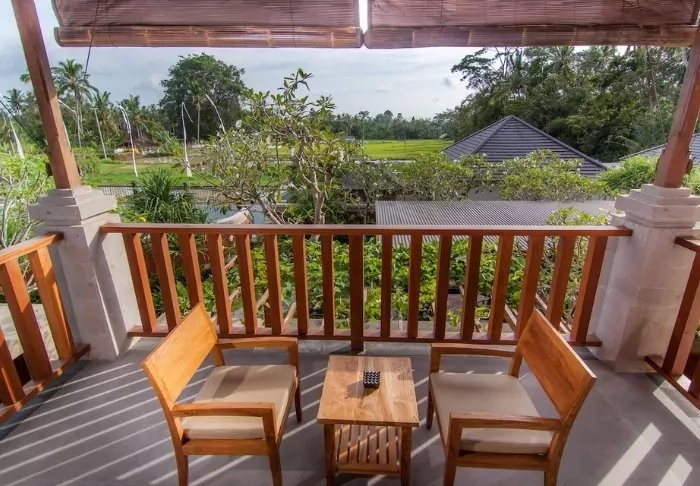 Værelserne er 50 kvm store og lækre indrettet i moderne balinesisk stil, der blender perfekt ind i de naturskønne omgivelser. Alle værelser har wi-fi, aircondition, loftsventilator, te- og kaffefaciliteter, minibar, gratis vand på flaske, værdiboks, tv og telefon. Badeværelset er udstyret med badekåbe og -tøfler, hårtørrer og toiletartikler. Efter en forhåbentlig dejlig søvn, kan du sætte dig ud på din private terrasse, der har udsigt til de grønne omgivelser, og nyde en kop dampende te eller kaffe til junglens mange lyde.