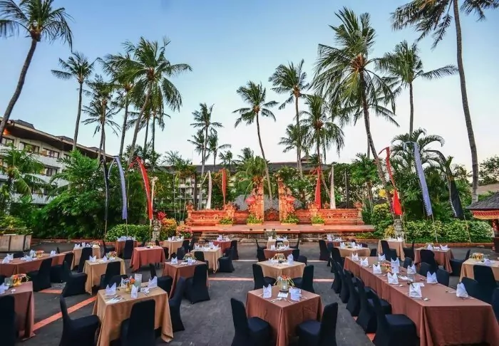 Glæd dig til gourmetoplevelser på hotellets forskellige restauranter. Start morgenen på Tirta Restaurant med en dejlig morgenmadsbuffet, nyd autentiske indonesiske retter på Lada Restaurant, eller smag italienske favoritter på Basilico Italian Pavilion. Bamboo Bar & Lounge tilbyder en afslappet atmosfære og en iøjnefaldende indretning. Det er det ideelle sted at slappe af med en eftermiddagscocktail til lyden af havet, og ved solnedgang kan du nyde snacks og lækre bagte pizzaer til lyden af livemusik.