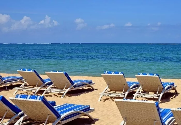 På stranden kan du frit benytte både liggestole og parasoller, så du kan ligge og slappe af og nyde den indonesiske varme.