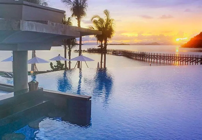 I løbet af dagen kan du også stille sulten med et besøg i poolbaren, i Mesa Bar & Lounge på tagterrassen eller i Naga Bar der ligger med en perfekt udsigt til det smukke hav på den lange badebro.