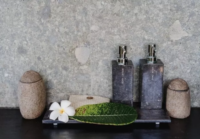 Batu Karang er opført i rustikke materialer, som fint harmonerer med de tropiske omgivelser. Stilen er moderne og traditionel, hvilket også går igen i resortets 37 indbydende villaer og suiter, der er indrettet med lyse vægge, flotte stengulve og fine mørke træmøbler, der bidrager til en varm og hyggelig atmosfære.
