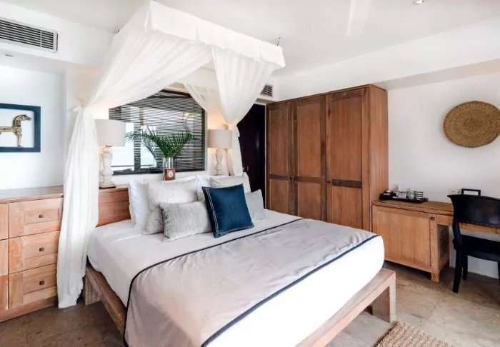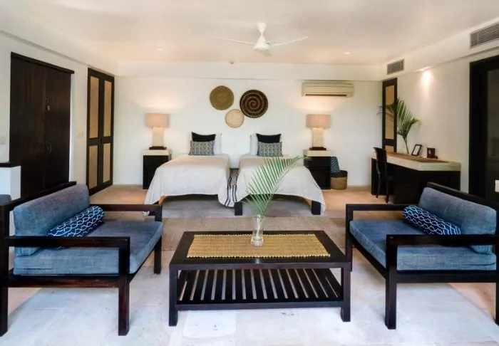 Værelseskategorierne spænder fra dobbelt værelse på 45 m2, hvoraf flere har privat plunge pool, til 3-værelses villa på 300 m2. Samtlige værelseskategorier er udstyret med aircondition og loftsvifte, myggenet over sengen, tv, telefon, Internet samt minibar, kaffe- og tefaciliteter, strygejern og -bræt, badekåbe og hårtørrer. Der er desuden udendørs bad og bruser.